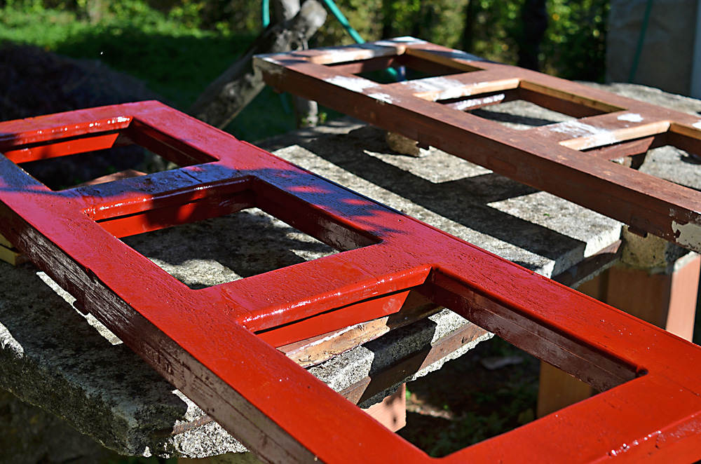 Lavori di ottobre. Albe e tramonti magici, clima fresco e aria d'autunno. La campagna è tutta per noi. Poco spazio per la contemplazione e molto per il lavoro. Restauriamo due finestre di oltre cent'anni fa. Queste finestre avevano le ante fatte di tutto legno, senza vetri; pertanto se le chiudevamo perchè faceva freddo non entrava luce. Farle rifare ex novo ? Sentito il prezzo ho fatto un dietro front da parata. Ecco allora l'idea: tagliare con il seghetto alternativo i riquadri per i vetri e applicarveli con il silicone. Detto fatto. Le smontiamo, le facciamo segare, quindi carteggiamo, stucchiamo e verniciamo, risparmiando centinaia e centinaia di euro beandoci nel piacere della manualità. Adesso ogni volta che guardo quelle ante gioisco del lavoro ben fatto e dei soldi risparmiati.