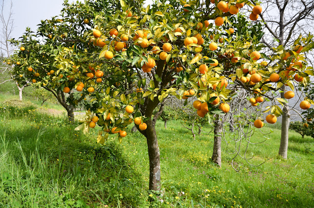 Rientro in campagna e cammino ancora. Cammino tra gli alberi, sui sentieri che ho decespugliato. Gli agrumi sono rigogliosi, stracarichi. Ci sono arance rosse, arance Spina, arance Bianche. Limoni a non finire: è un altro anno ricco.
